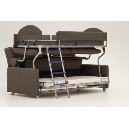 The sofa that turns into a set of bunk beds is truly a modern engineering marvel. The piece of furniture allows you to go from sofa to bunk beds and back again with very little effort involved on your end. When converting back and forth, there are straps that hold the mattresses and there's even a zipper compartment that holds the pillows.