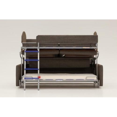 The bunk bed conerting sofa sleeper is individually created by craftsmen, has a frame that's made from select solid spruce wood with finger joints and no-zag springs, and the exterior sides and back are fully padded.